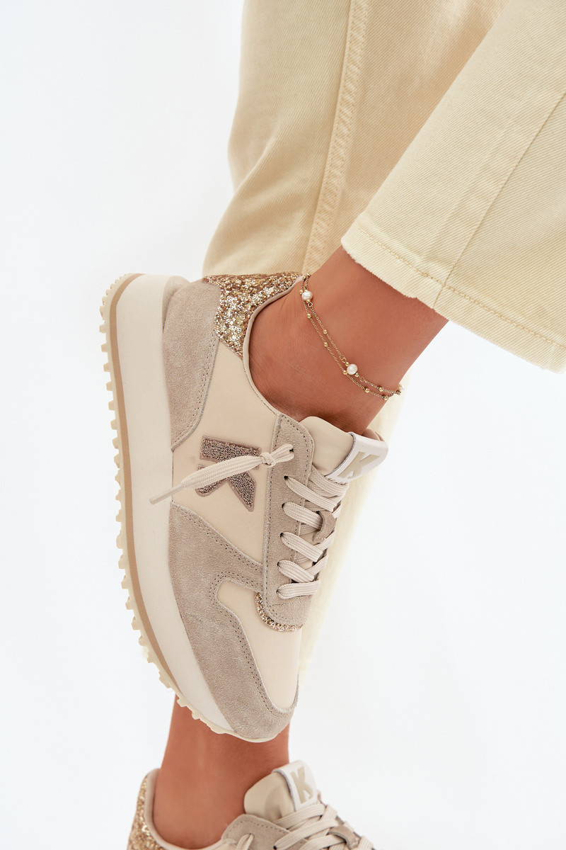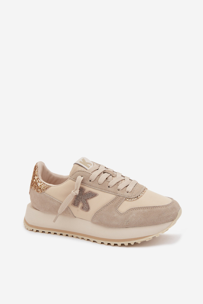 Leer van suède Sneakers model schoenen Dames met platform Kobbo 100103 beige