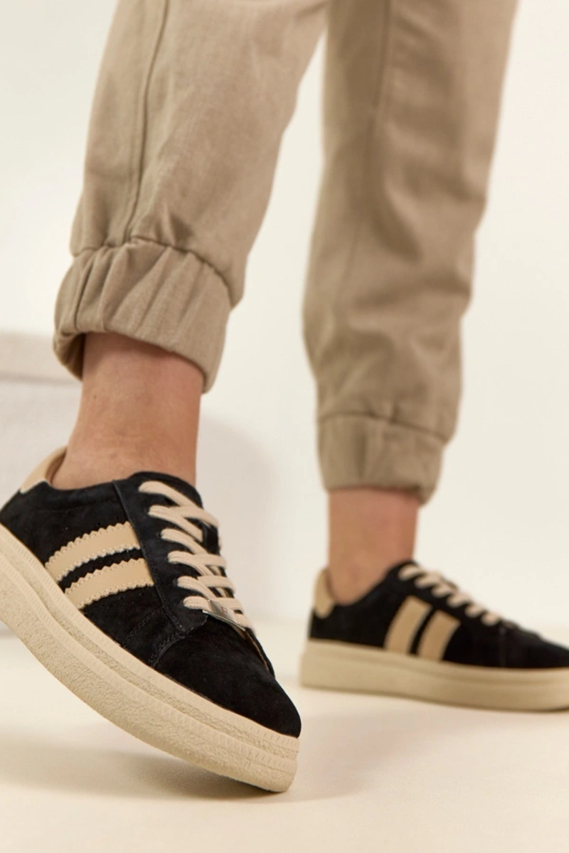 Zwarte leren sneakers met platform Filippo