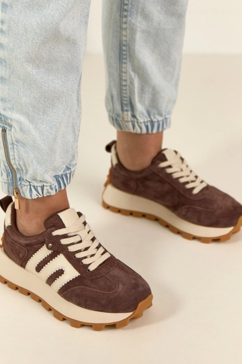 Chocoladekleurige leren sneakers met platform Filippo