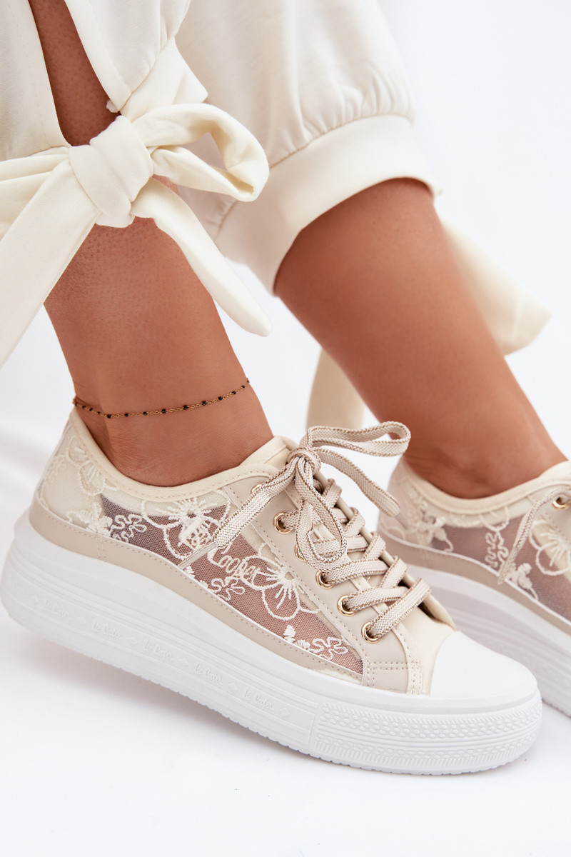 Vrijetijdsschoenen met kant met platform Lee Cooper LCIN-26-44-4481 beige