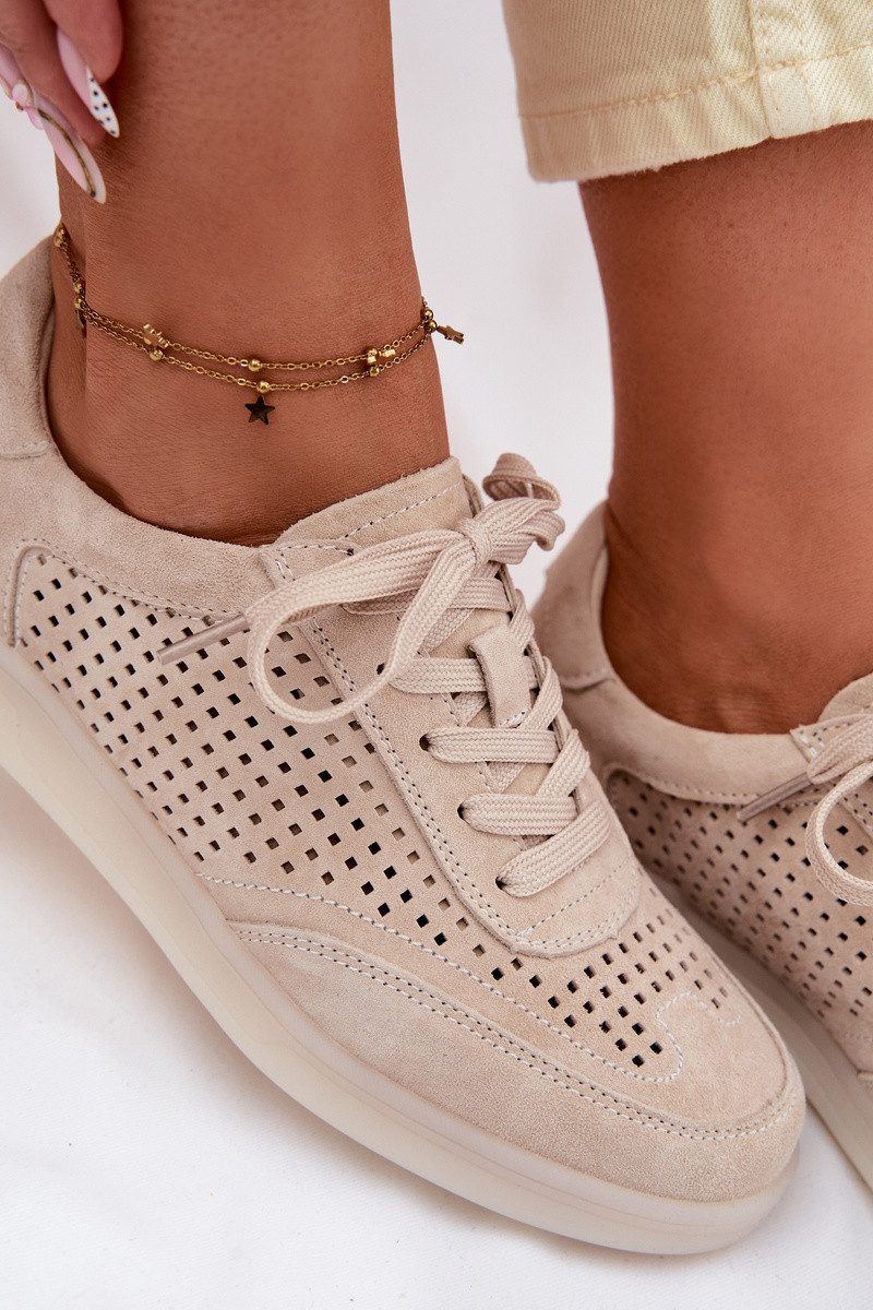 Leer van suède Sneakers model schoenen Dames met elementen van opengeInerkt beige Almora