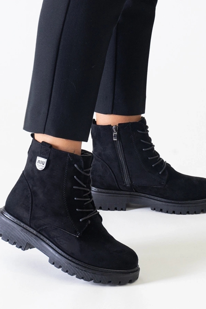 Zwarte werklaarsjes van kunstsuède Leonora op platform