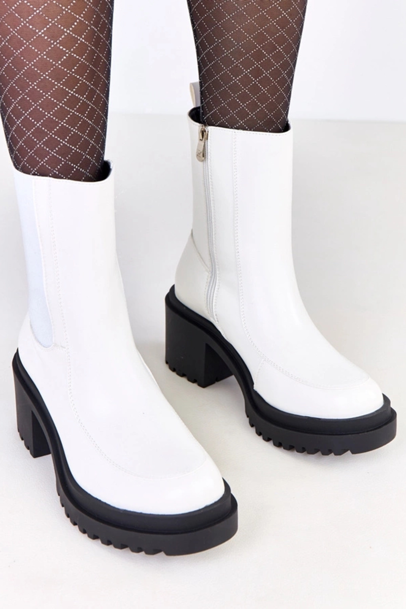 Witte enkellaarsjes op een blokhak met elastische inzet Jarley
