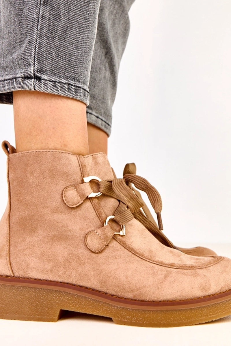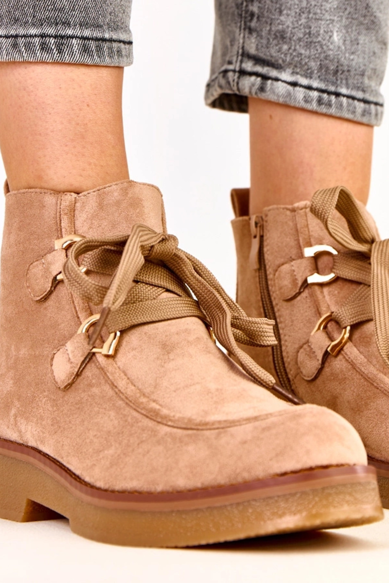 Zandkleurige warme enkellaarsjes met decoratieve veters, Katrins