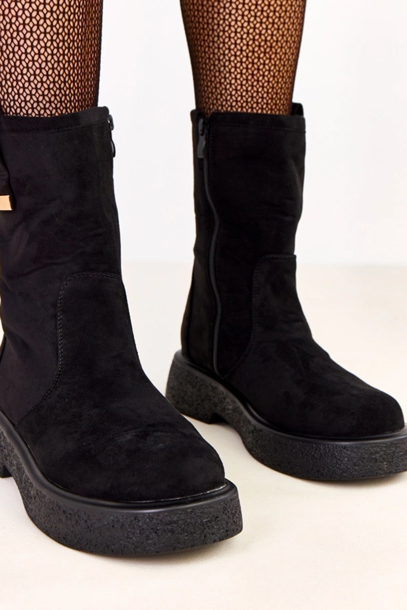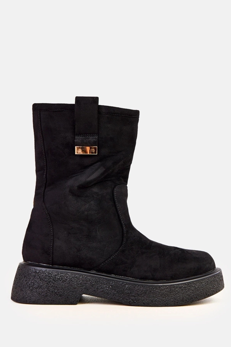 Zwarte enkellaarsjes van kunstsuède met gouden versiering Mileda
