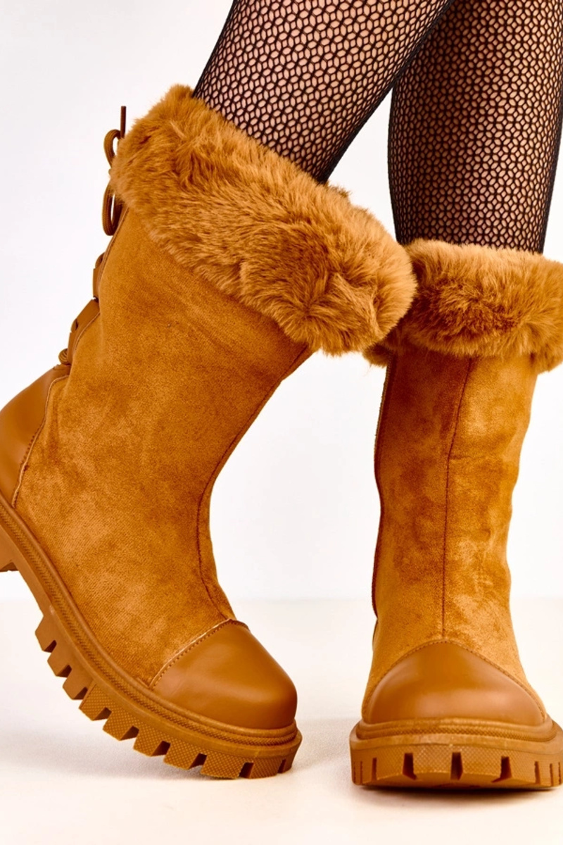 Beige enkellaarsjes met kunstsuède schacht en bont Satisa