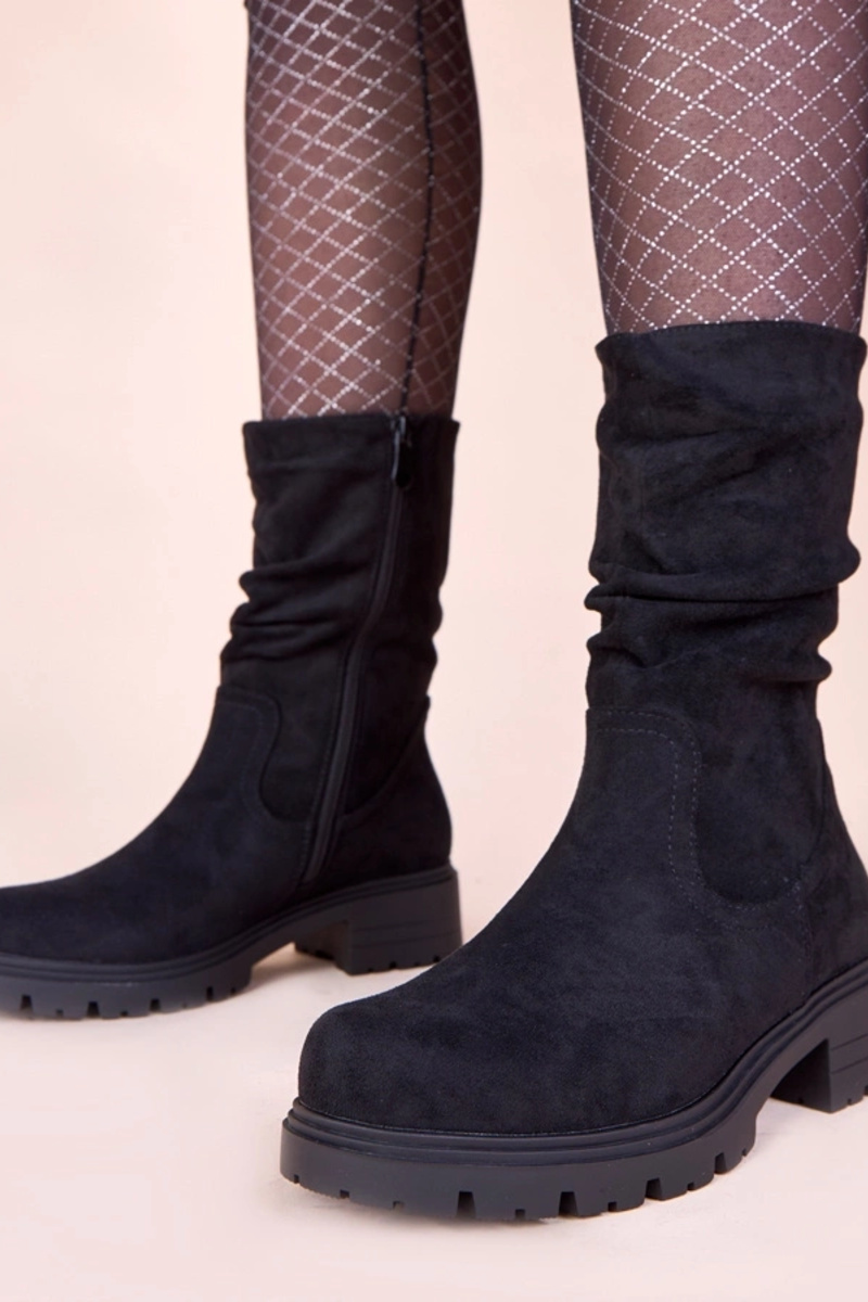 Zwarte enkellaarsjes op een platform met plooien Malha