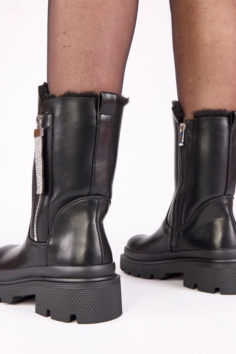 Zwarte enkellaarsjes op platform met decoratieve rits met zirconia steentjes Asta