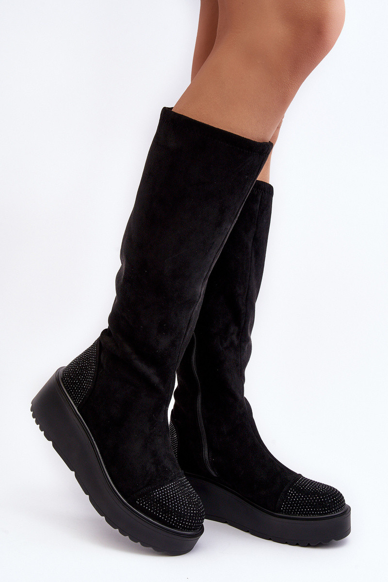Dames suède hoge laarzen met platform S.Barski HY53-8 zwarte kleur