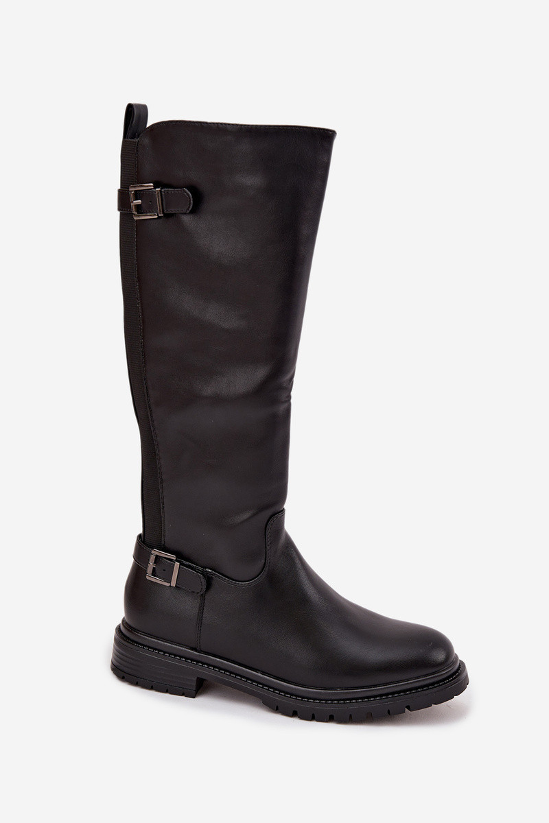 Gevoerde dames lange laarzen met brede hakken en gespen, zwart, Sorelle