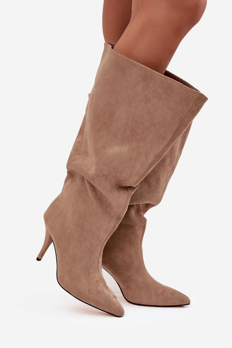 Instap dames lange laarzen met dunne hakken van kunstsuède in zandkleur Noretta
