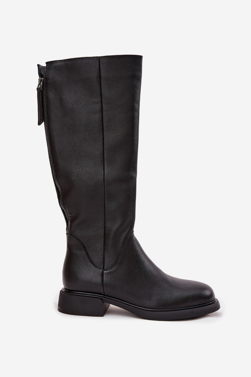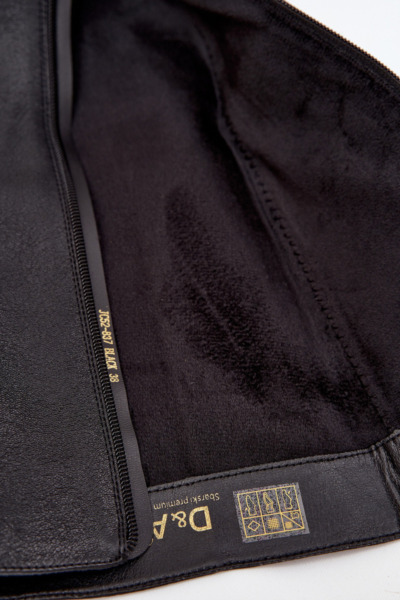Dames lange laarzen van kunstleer met brede hakken warm D&A JC52-837 zwarte kleur