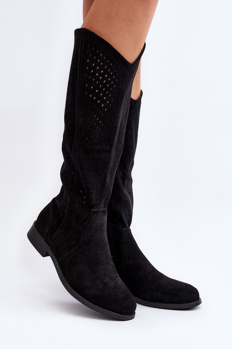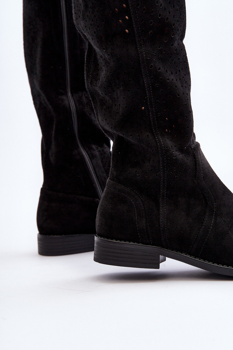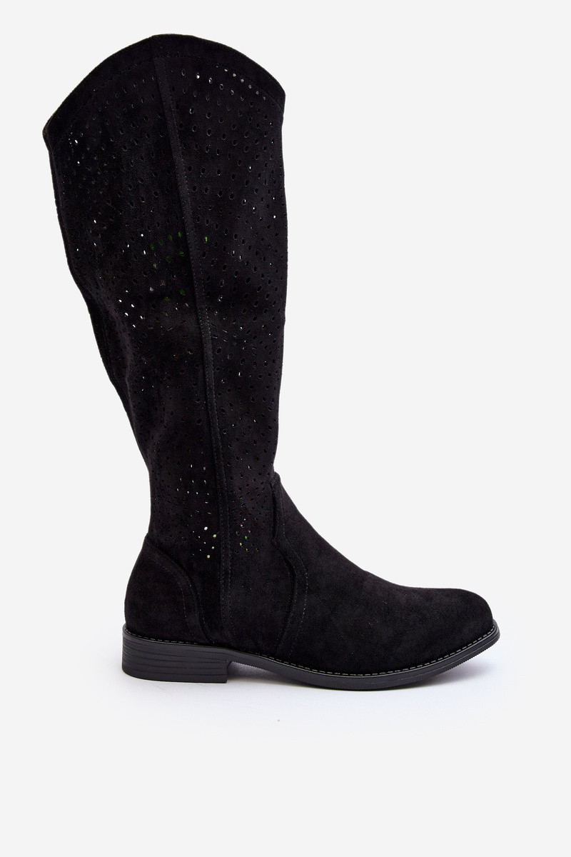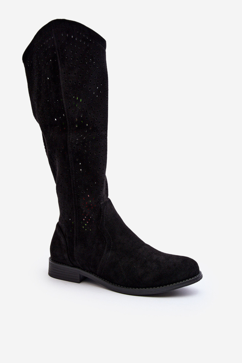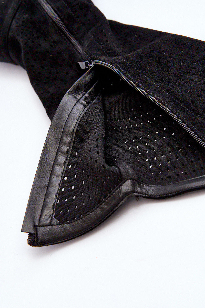S.Barski HY66-150 met kant-elementen lange laarzen met brede hakken in zwart