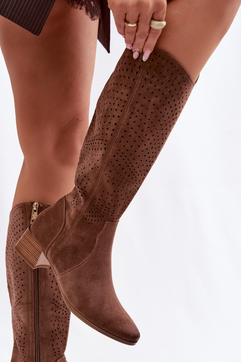 VINCEZAVinceza 58637 dames lange laarzen met perforaties en lage hak in bruine kleur