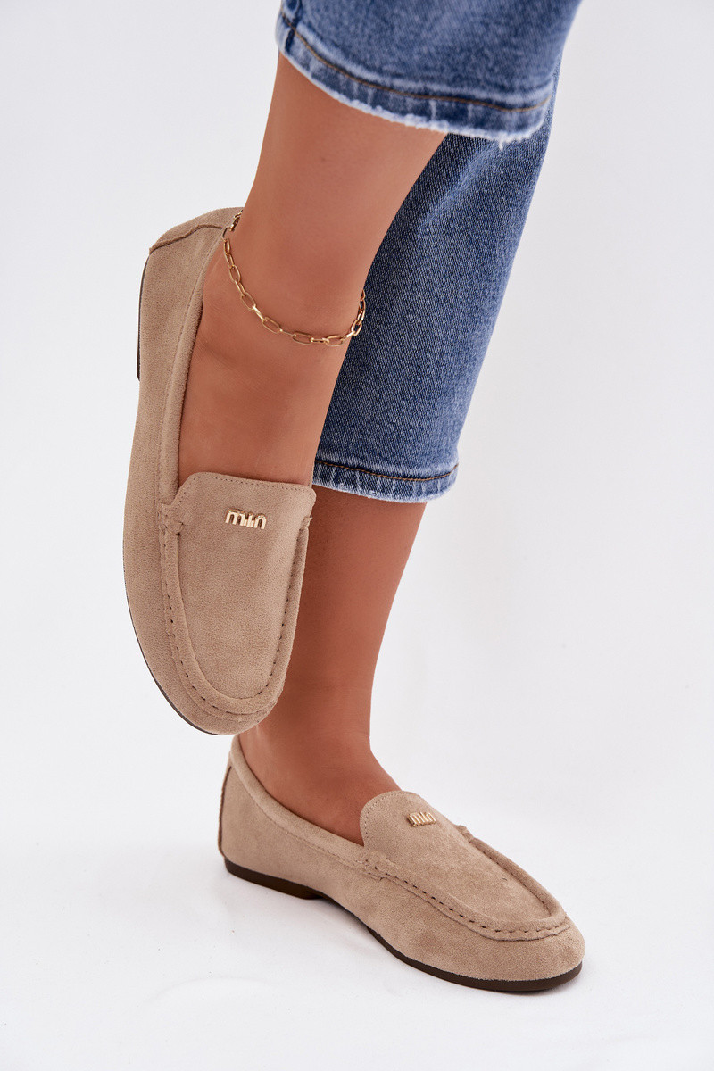 Damesmokassins met gouden details in zandkleur Sarivelle