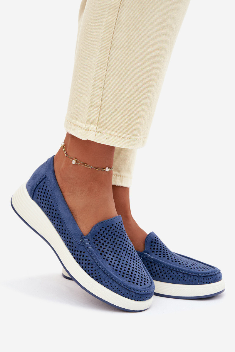 Dames mocassins met perforaties Sergio Leone MK097H blauwe kleur