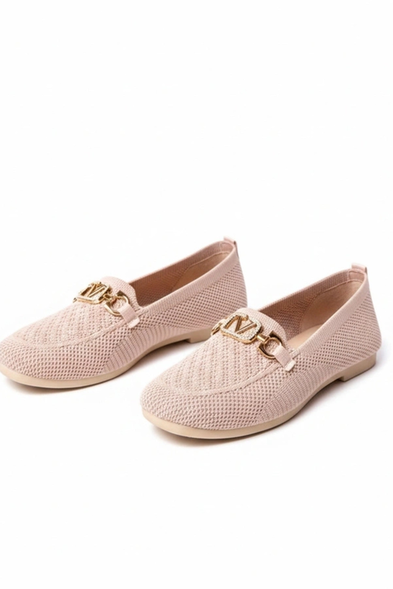 Roze stoffen mocassins met gouden decoratie Mathilde