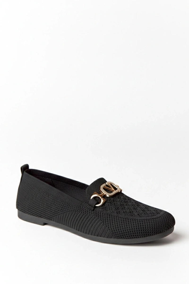 Zwarte textiele loafers met gouden decoratie Bianca