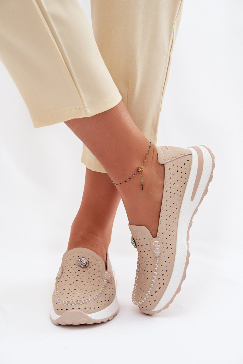 Damesaerodynamische leren mocassins Kemela zandkleurig