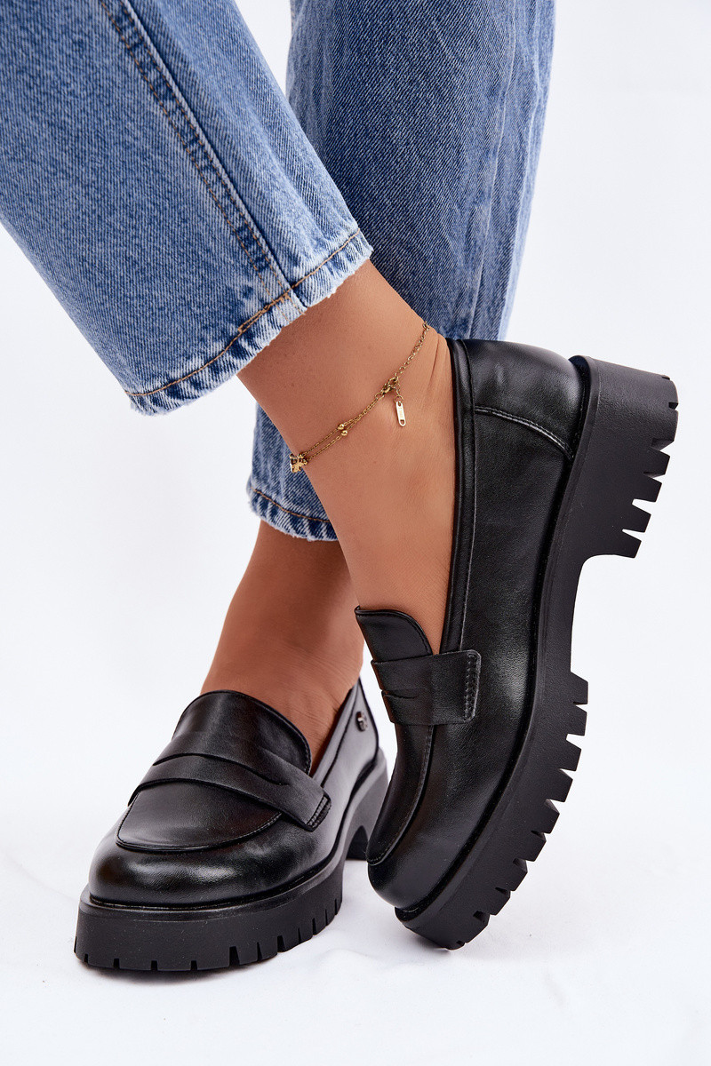 Vinceza 18125 leren dames instappers in zwarte kleur