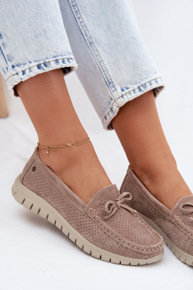 dames mocassinsOpturalnego van suèdeu met linten Vinceza 95401 beige