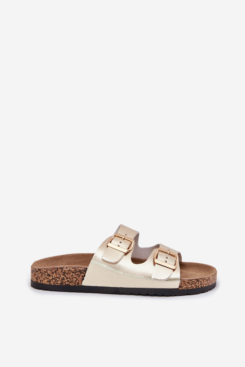 Dames pantoffels met gespen van kunstleer in goudkleur Iskira