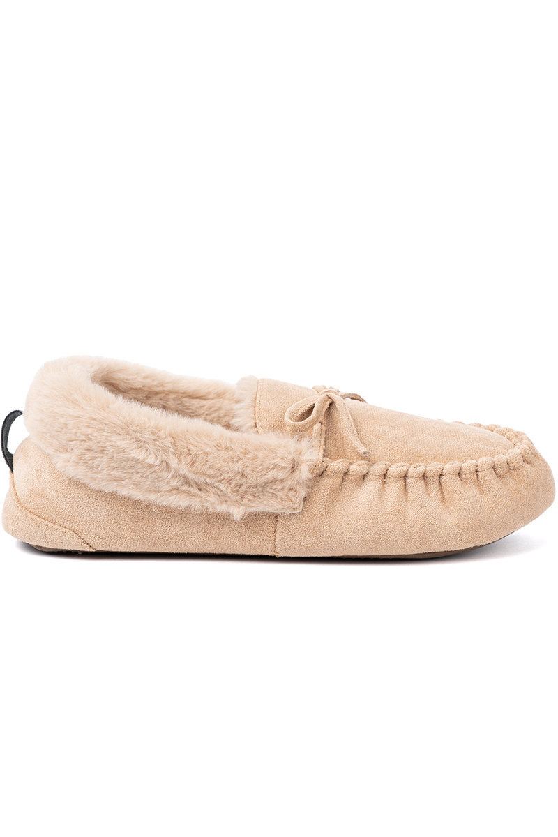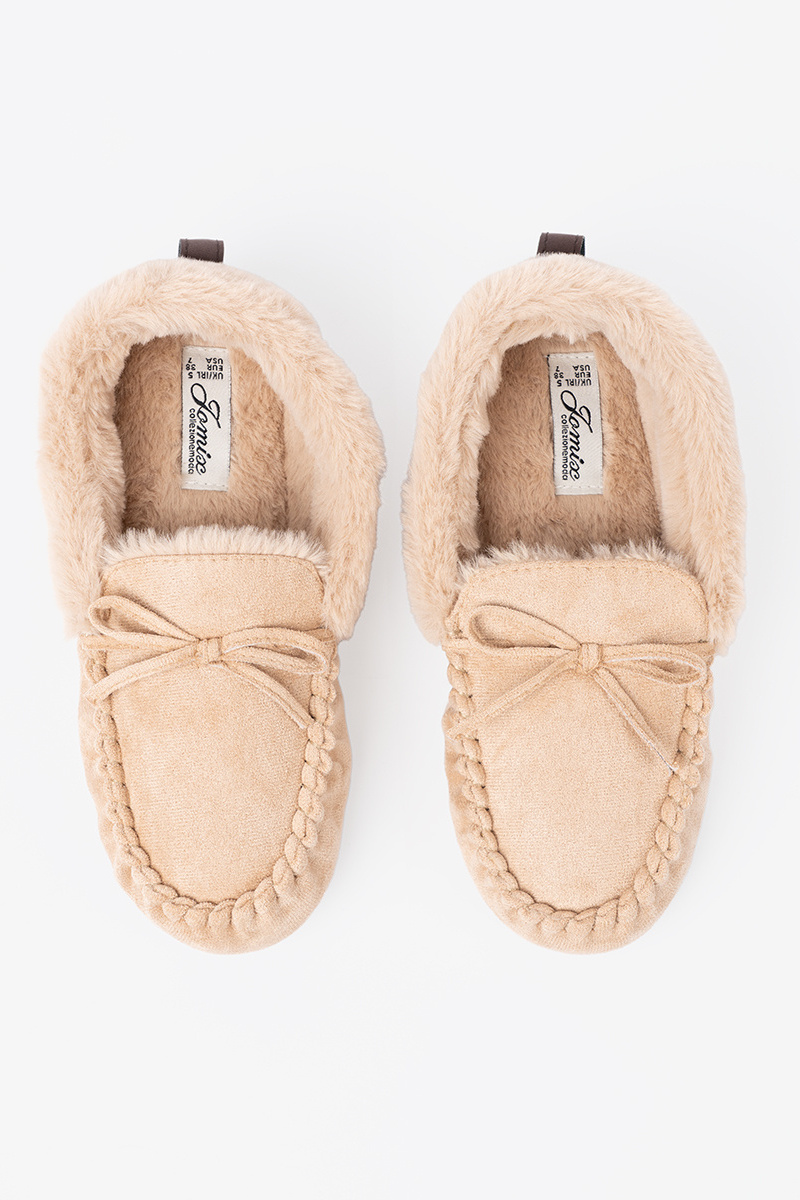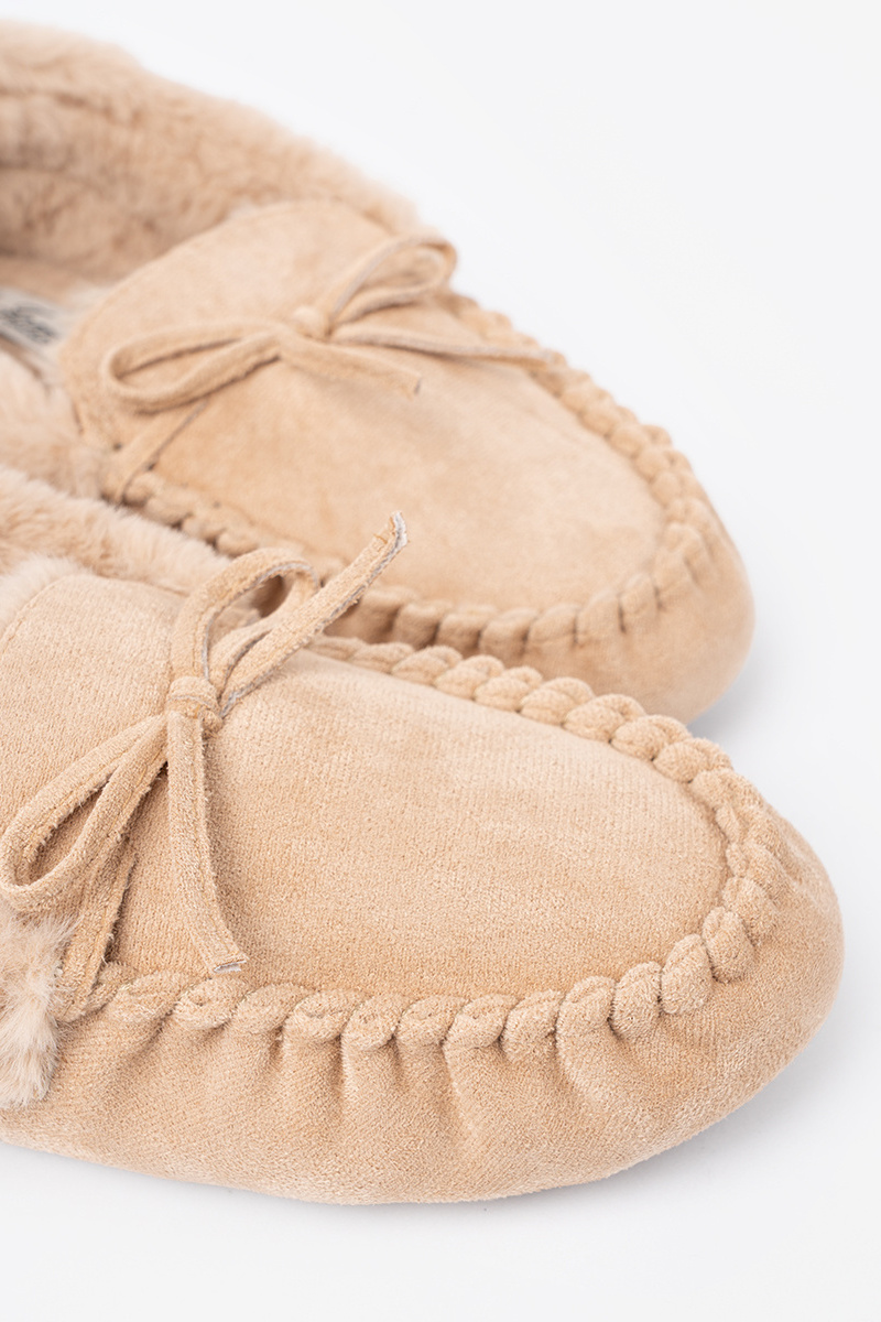 warme zandkleurige mocassins met strik