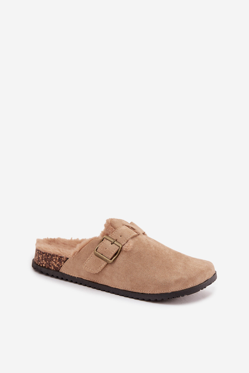 Dames pantoffels-klompen, gevoerd met bont aan de binnenzijde en gespen, zandkleur Sylisse