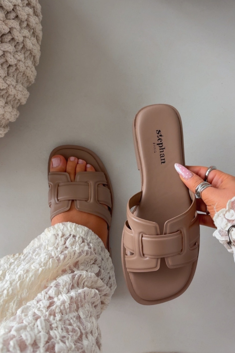 Damespantoffels met brede hakken in zandkleur „Lorania"