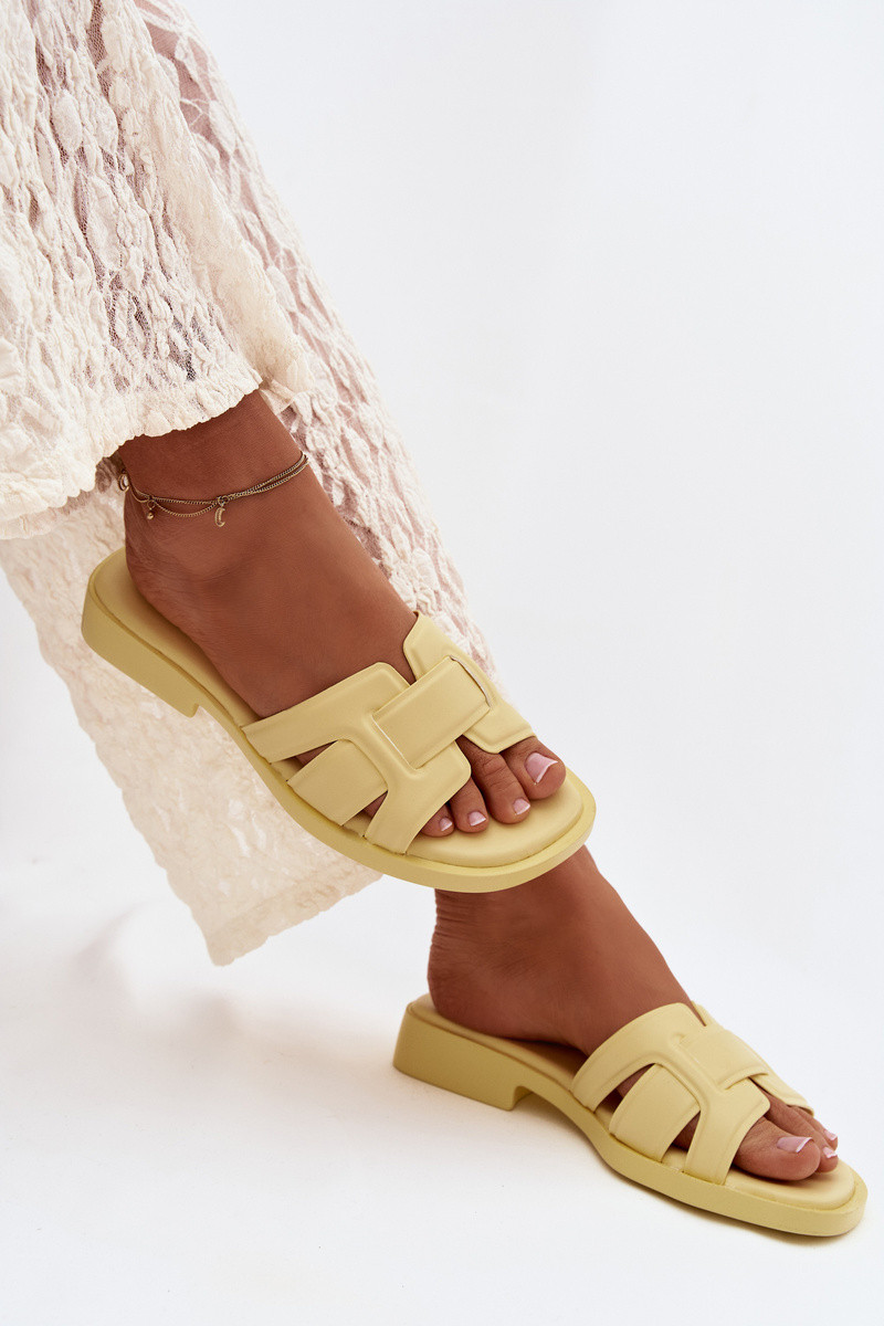 Damespantoffels met brede hakken in gele kleur „Lorania"