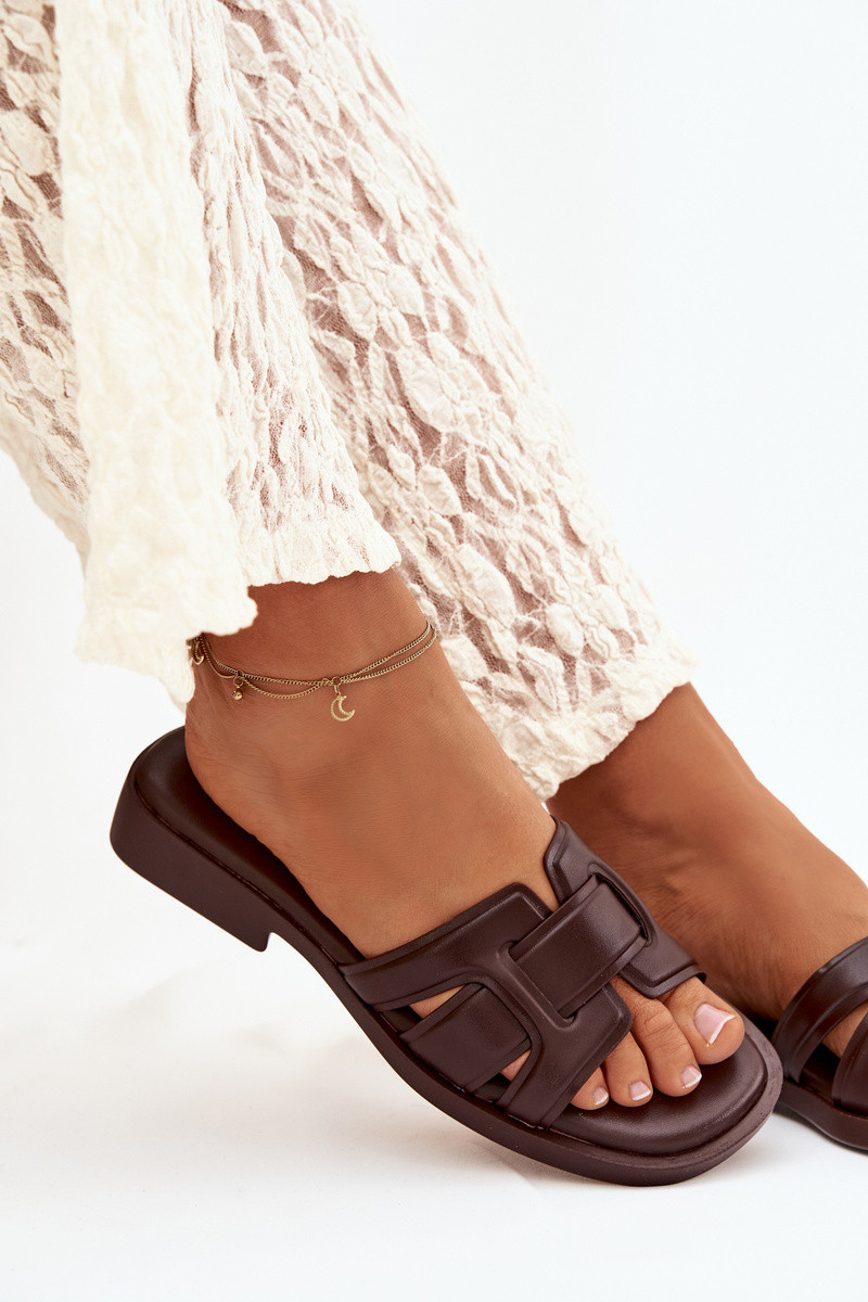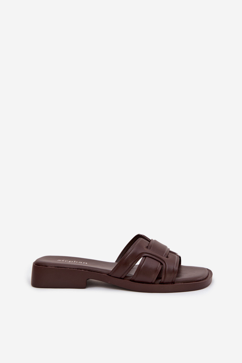 Damespantoffels met brede hakken in chocoladekleur „Lorania"