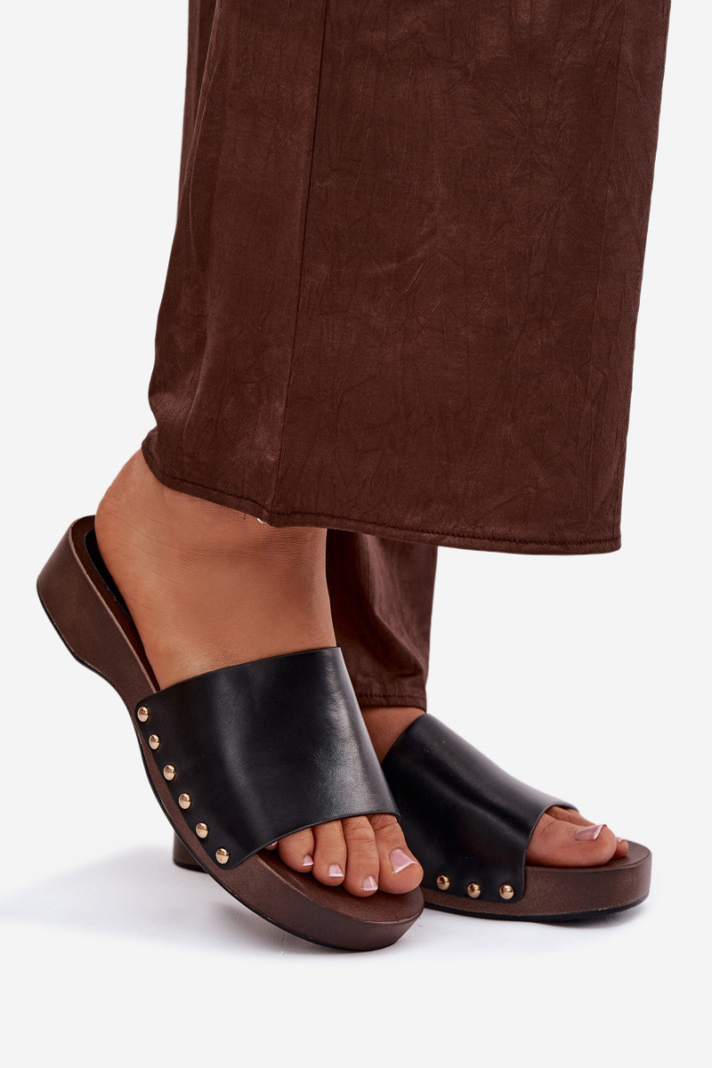 Dames slippers met gouden studs in zwarte kleur Terissa