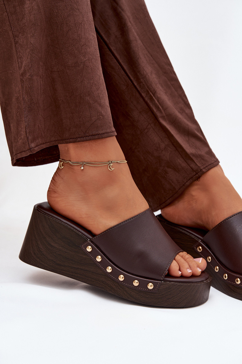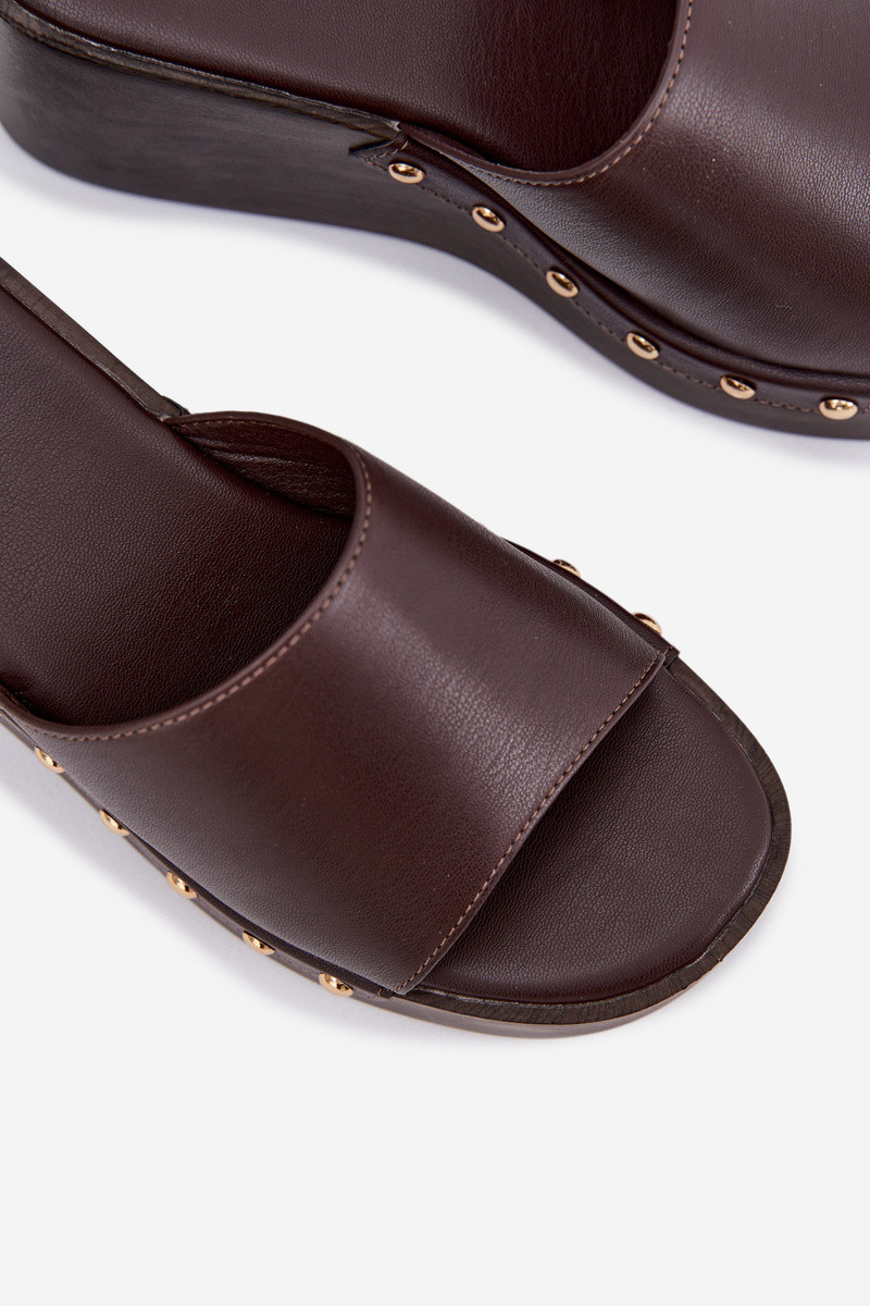 Dames slippers op platform met gouden studs in chocolade kleur Arionne