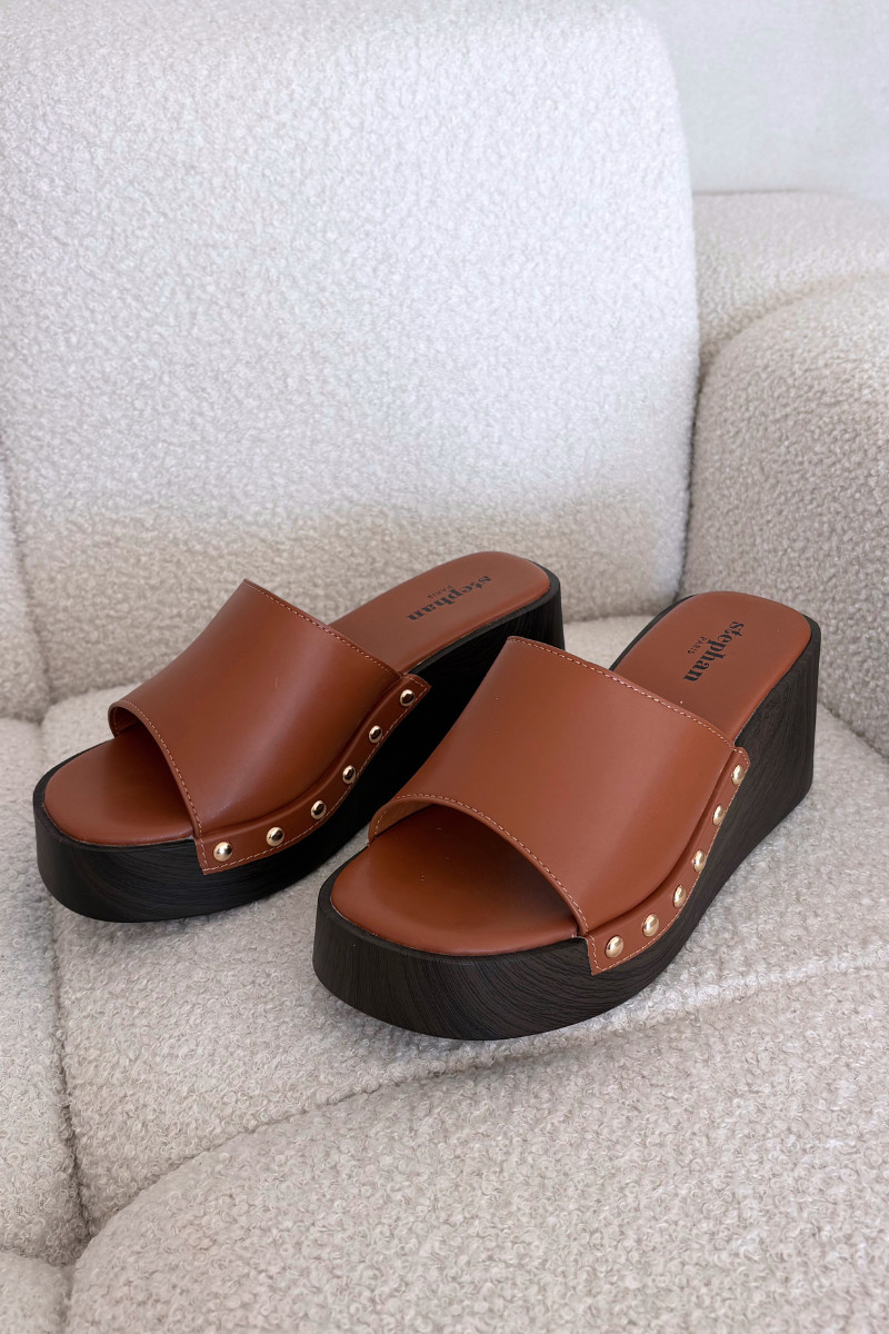 Dames platform slippers in goudkleur Arionne, bruin