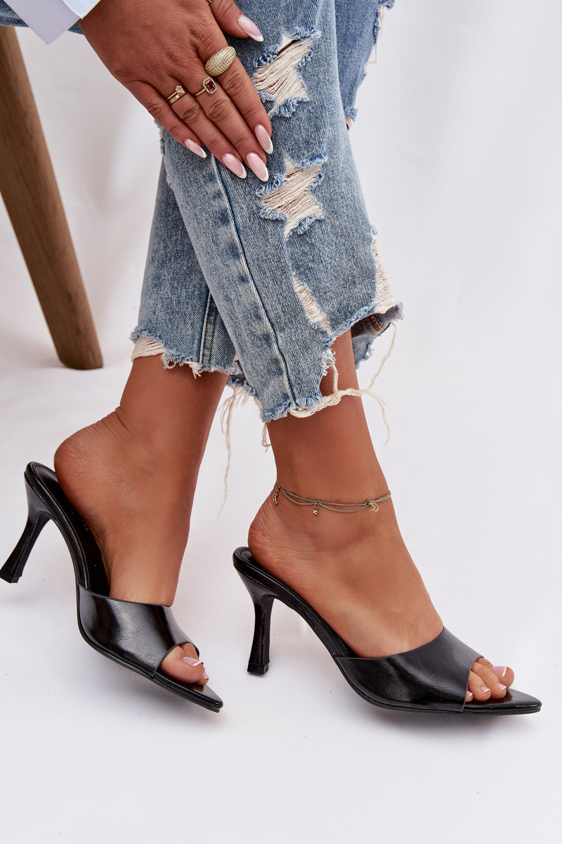 Dames zwarte lak slippers met hakken Lirissa