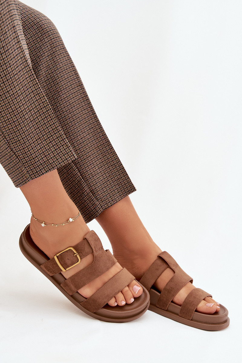Damespantoffels Met Strepen I Złotą met gespen bruine kleur Ulirissa