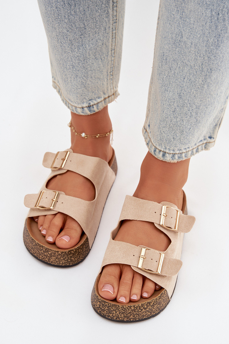 Ivoor kleurige damesplatformslippers met gouden gespen „Tovessa"