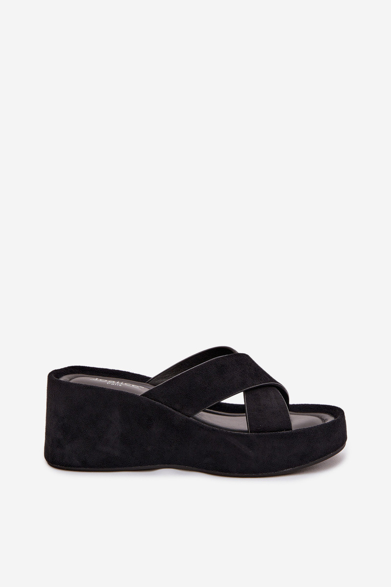 Zwarte damesplatformslippers van kunstsuède „Calorine"