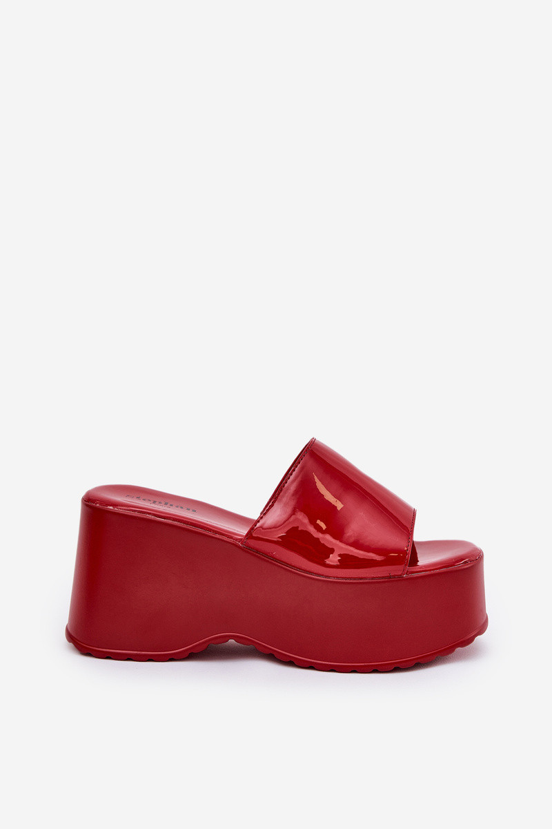 Nellevia dames slippers met platform en lak effect rood