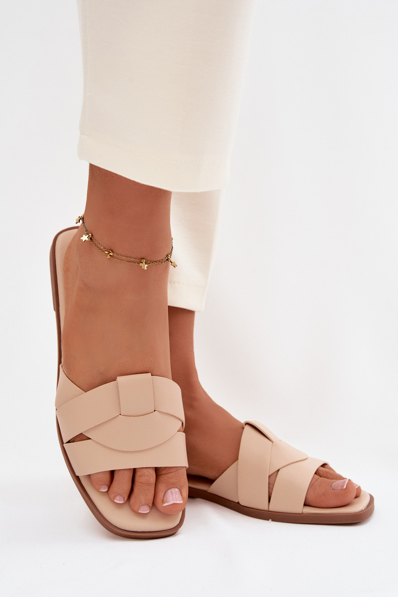 Dames sandkleurige platte pantoffels met bandjes Tai turirissae