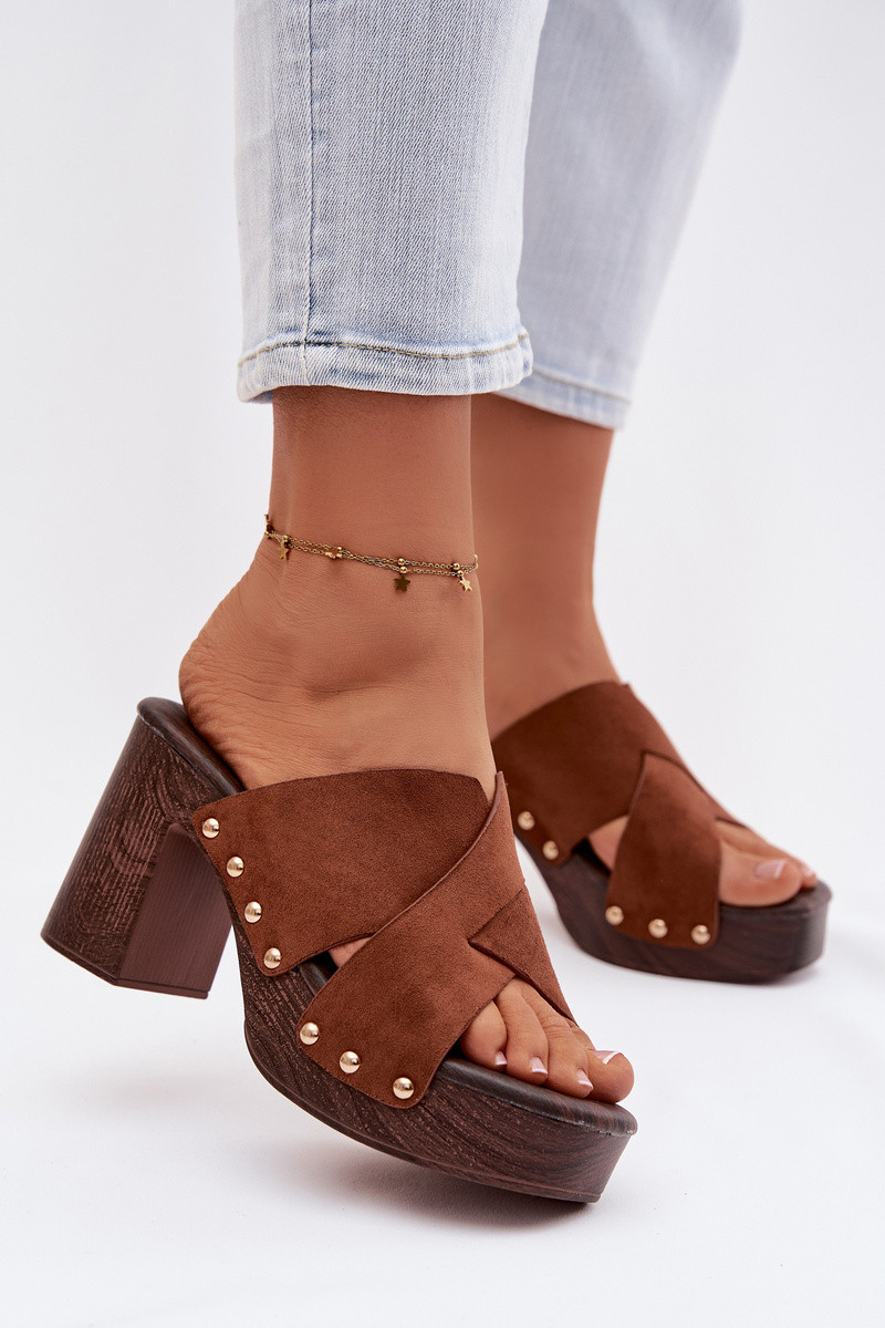 Damespantoffels met hakken Ze gouden kleurmi Studs bruine kleur Nerelle