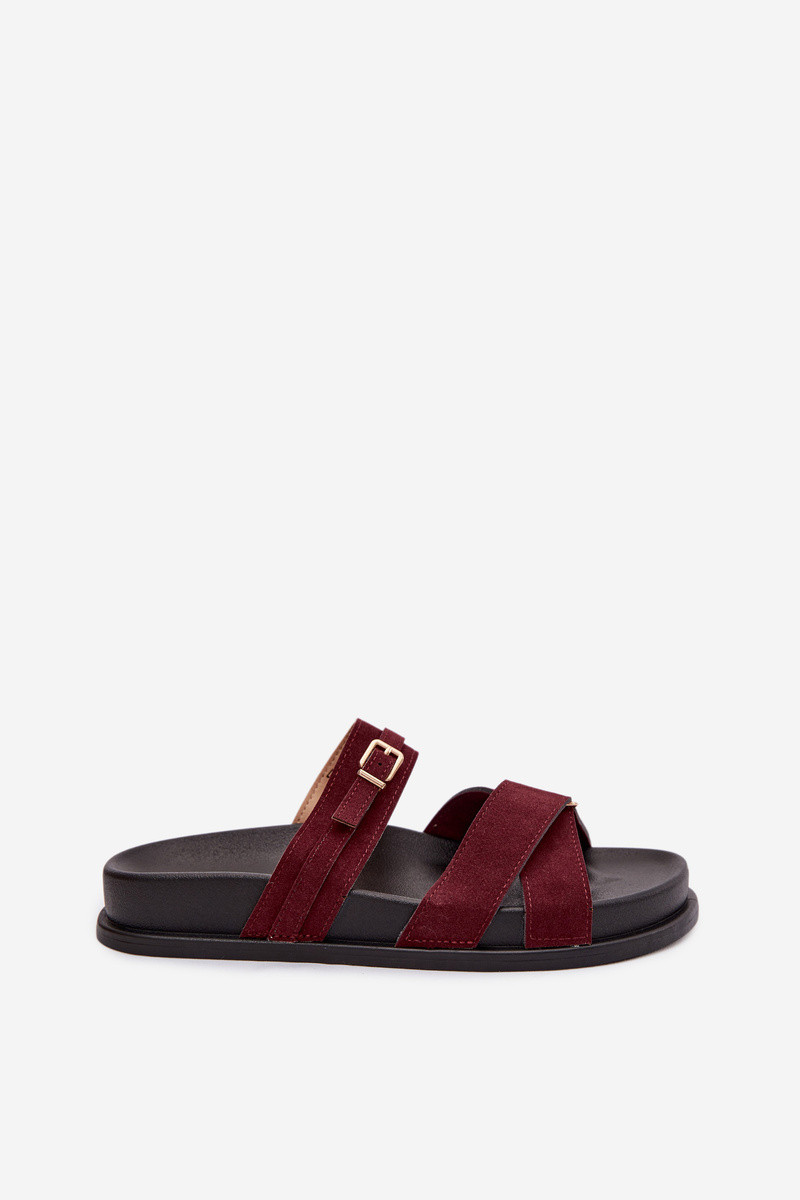 Dames slippers met gouden banden en gespen in bordeaux Selorina
