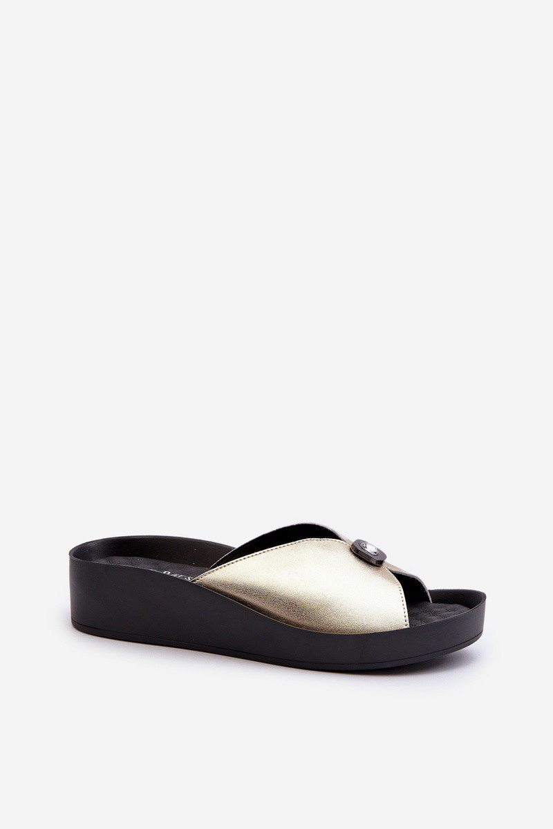 Dames leren slippers met ornamenten gouden kleur S.Barski KV27-027