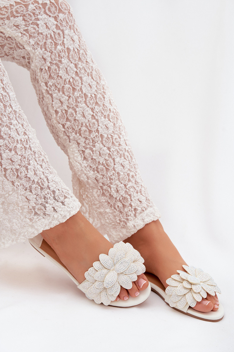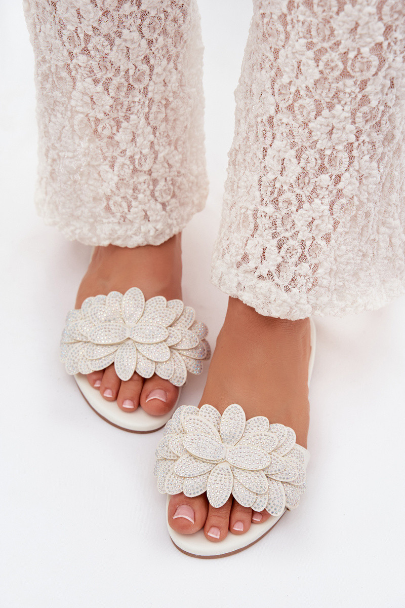 Witte kleur dames slippers met decoratie Grelora