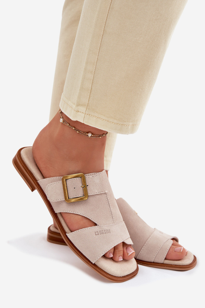 Dames suède slippers met brede hakken en gespen Big Star TT274476 zandkleur