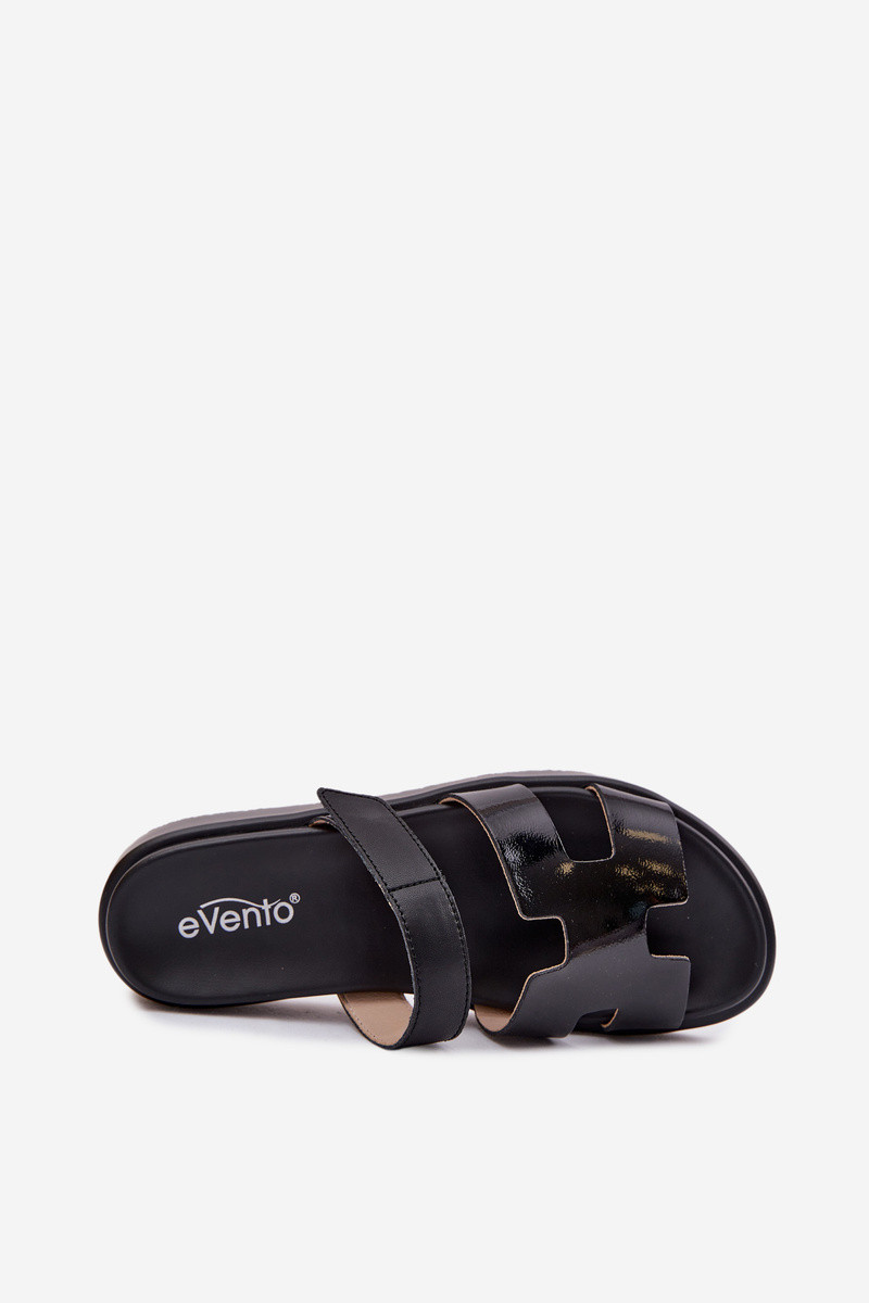 Leren pantoffels voor vrouwen met klittenbandsluiting in zwart Lemela