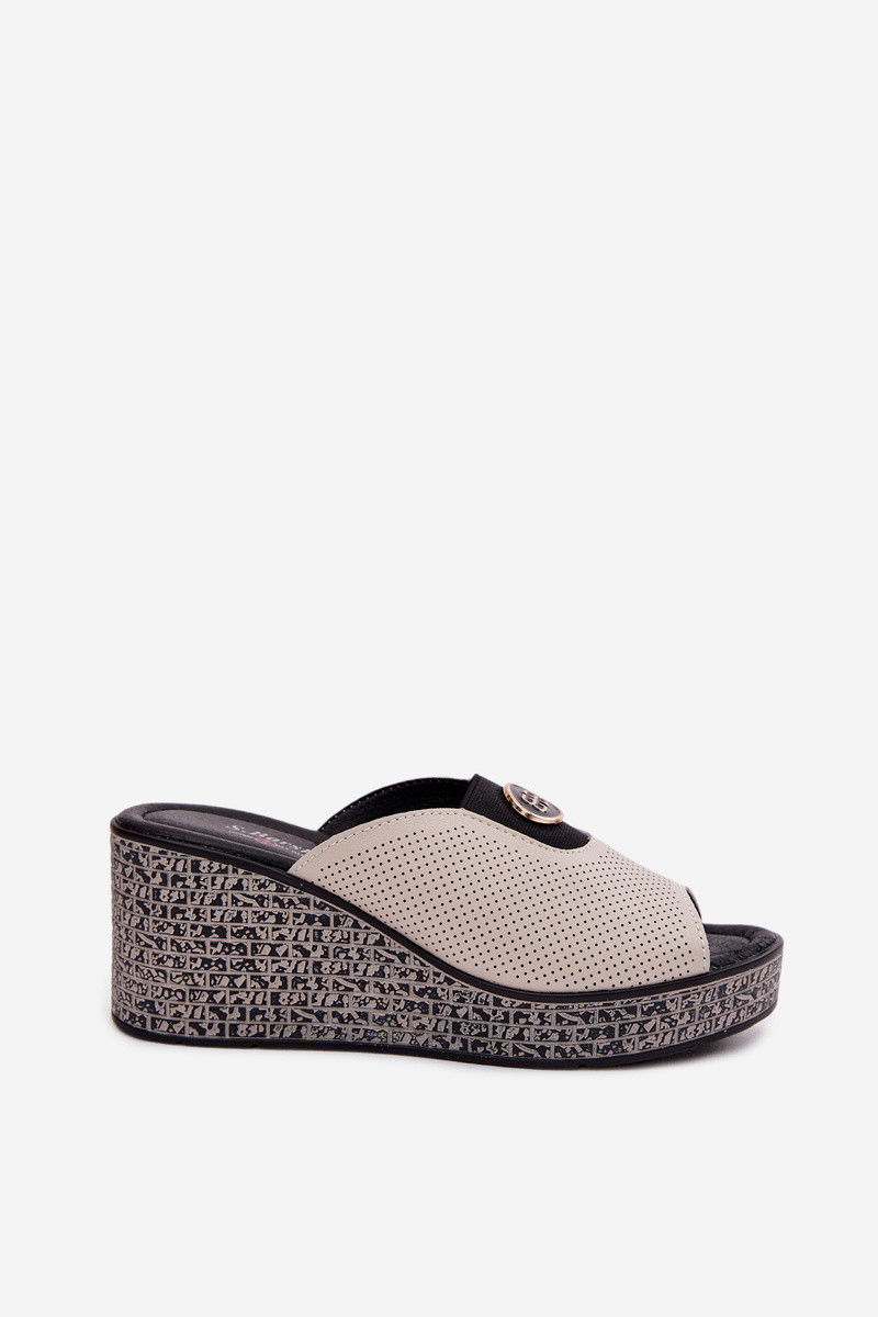 Leren slippers met platform en ornamenten S.Barski LR61-7011 zandkleur