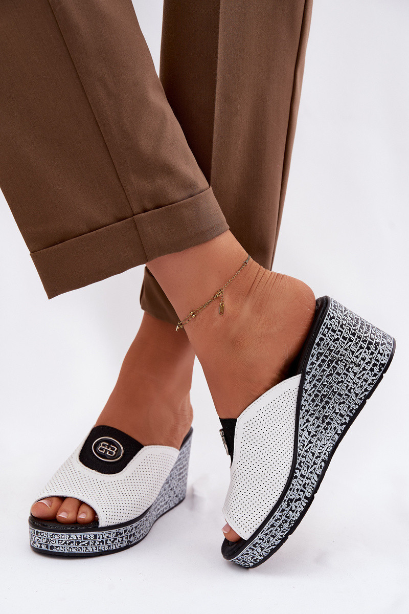 Leren slippers met platform en ornamenten S.Barski LR61-7011 witte kleur