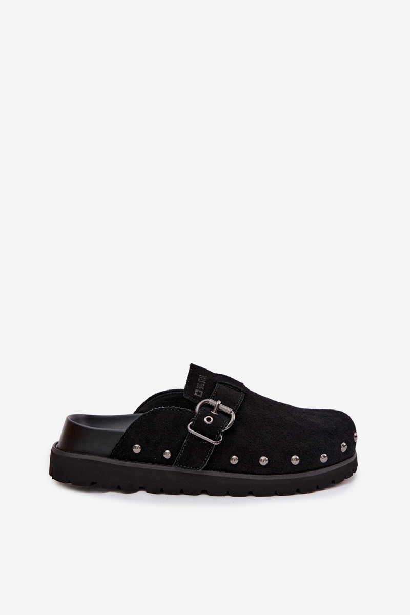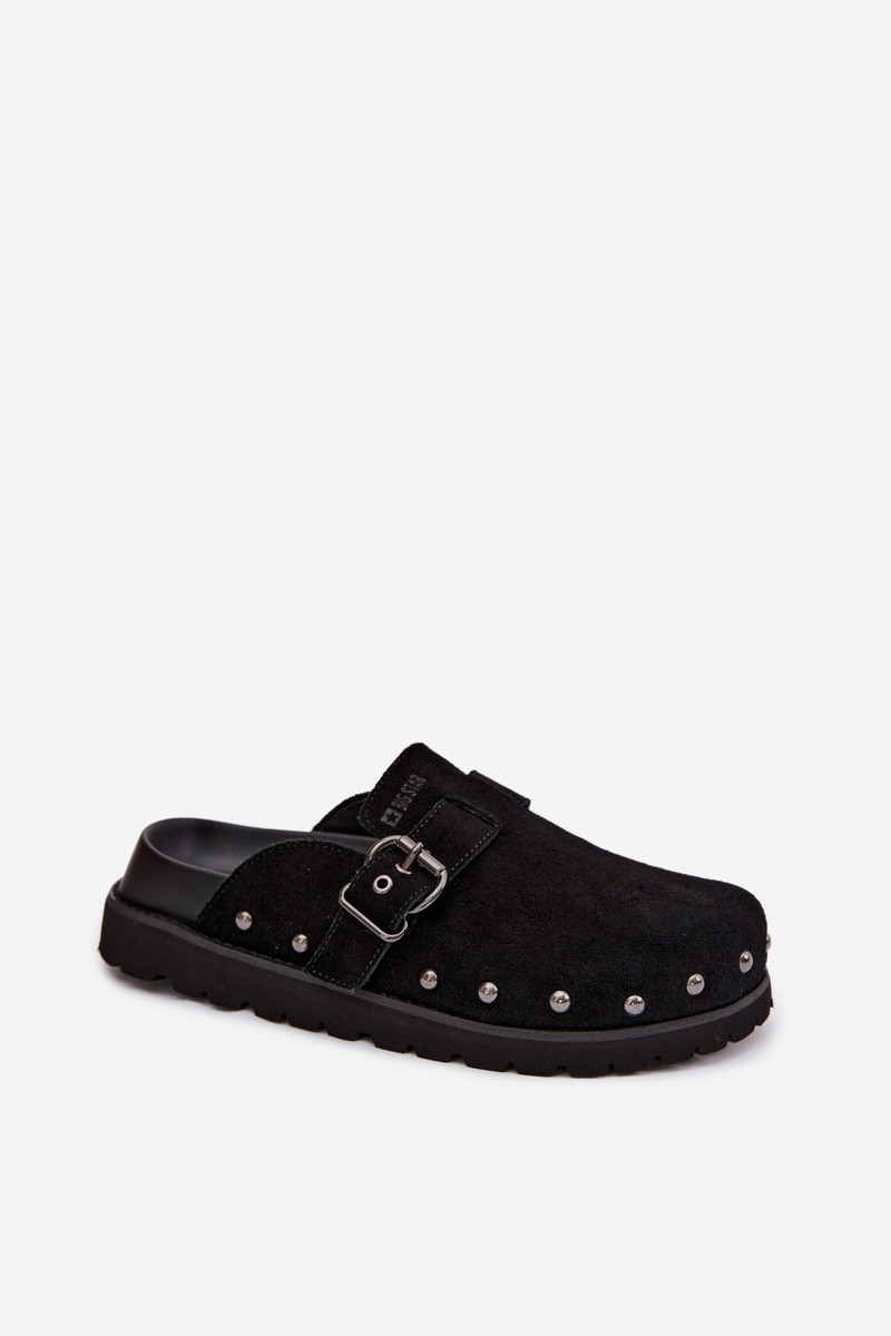 Big Star TT274951 suède klompslippers met plateau, studs en gespen zwart