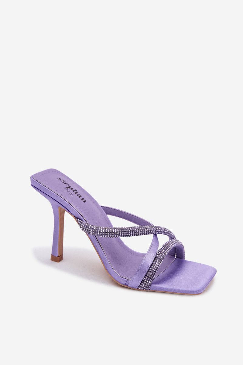 Dames paarse slippers met dunne hakken en glinsterende steentjes Karima